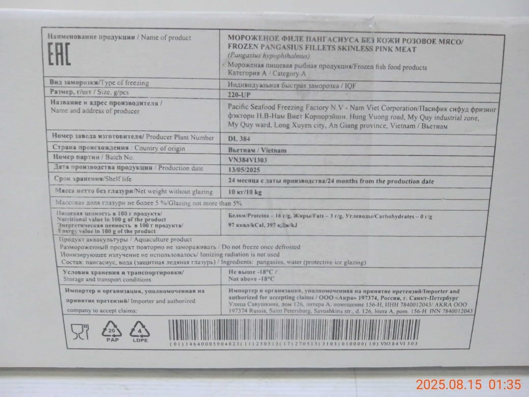 Филе пангасиуса, выращенного в специально обустроенных прудах со строгим контролем экологических и санитарных условий.