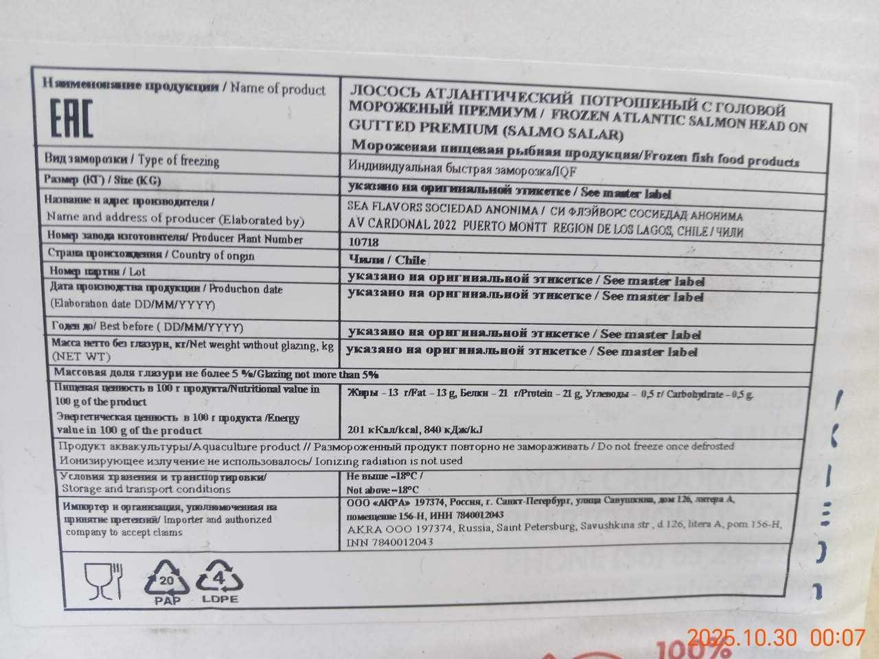 Чилийский лосось (семга) выращен в холодных чистых океанических водах. Продукт аквакультуры, заморожен сразу после вылова из садка. Без инъекций, идеальное состояние кожного покрова, высокий уровень цветности мяса, плотная структура.