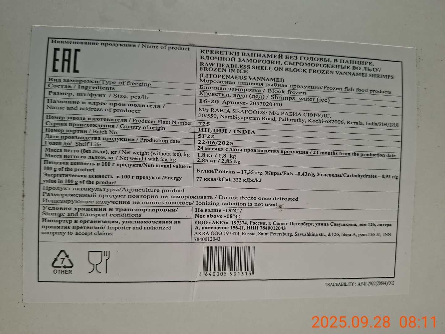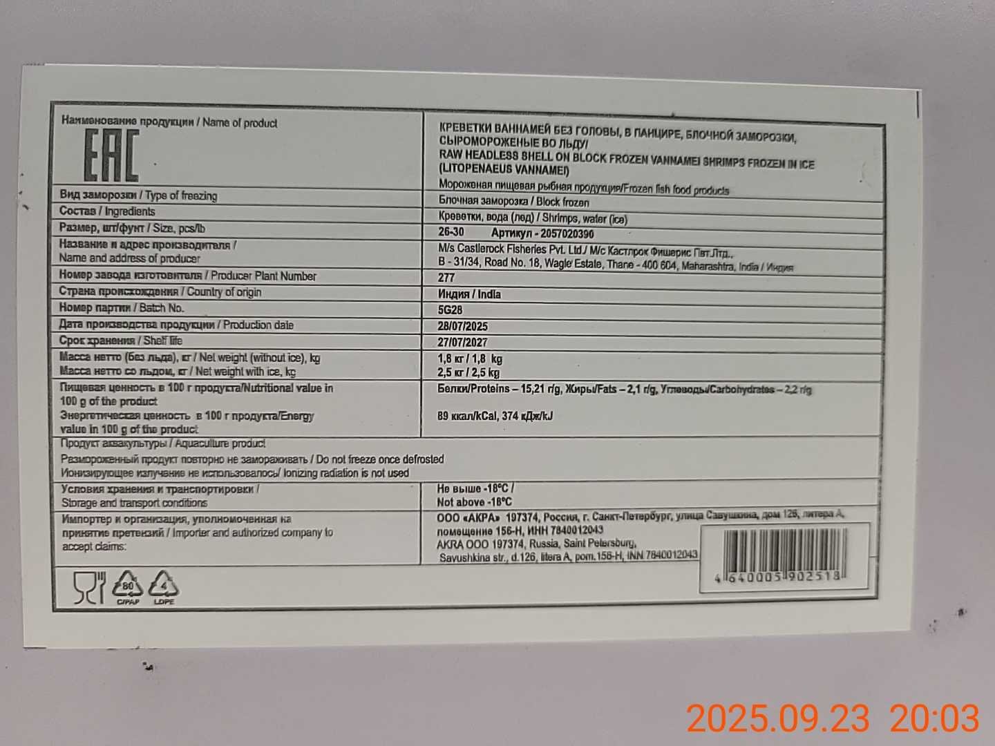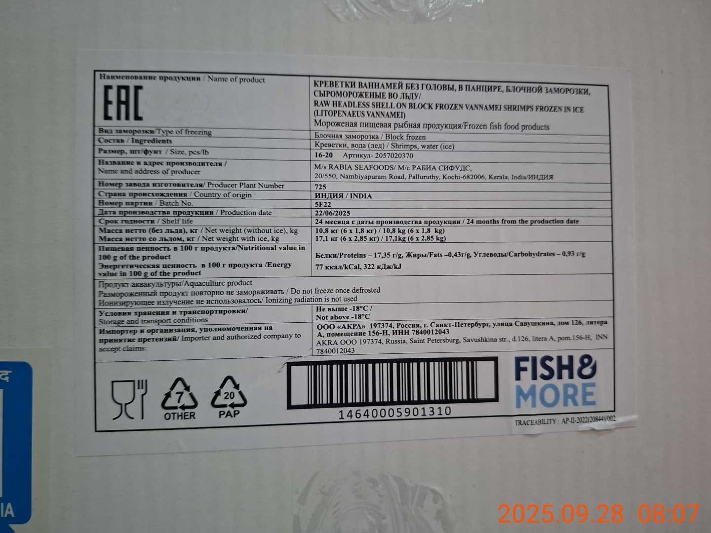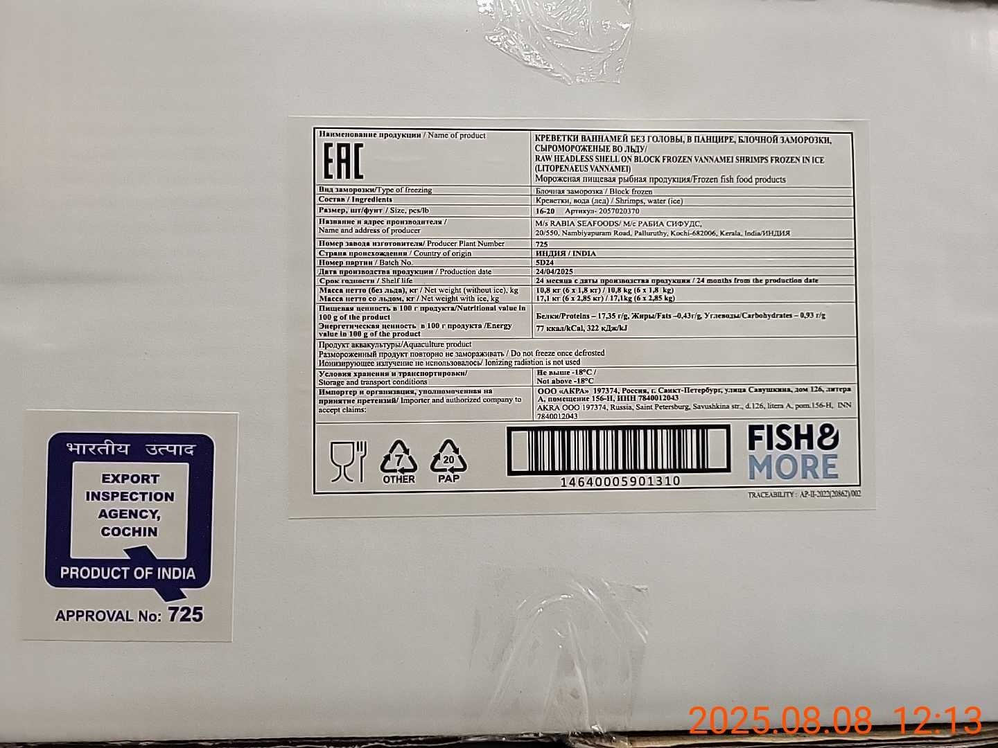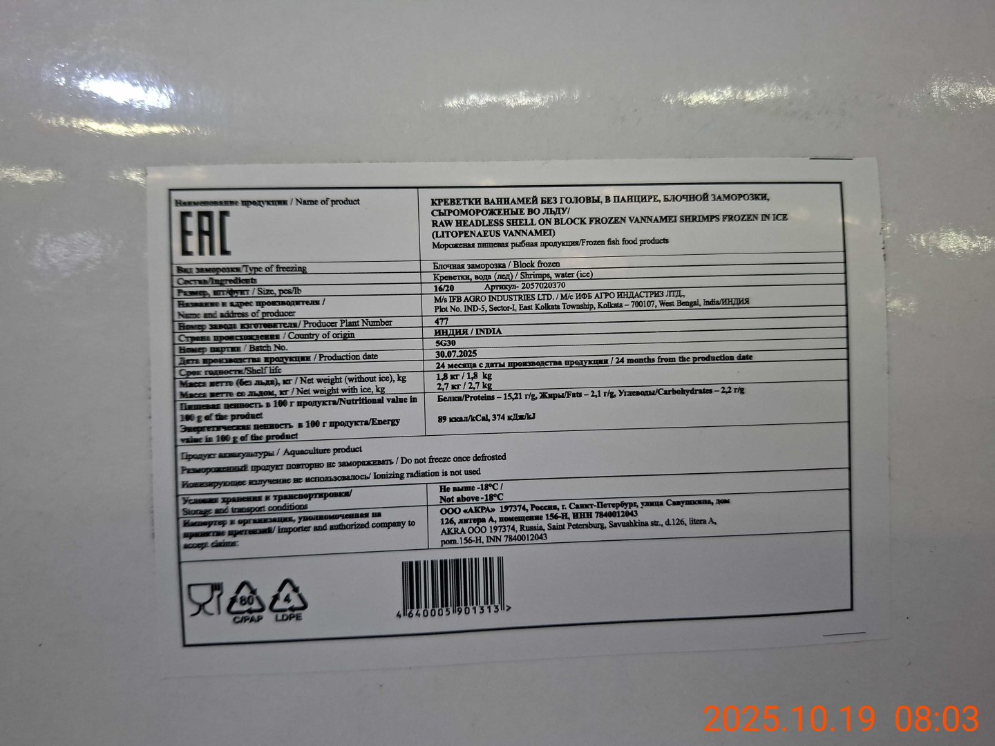 Мясо имеет сочный сладковатый вкус, плотную текстуру. Блочная заморозка обеспечивает плотную фиксацию каждой креветки в блоке и позволяет сохранить идеальную форму без повреждений.