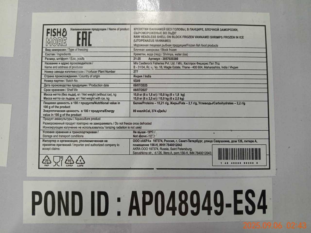 Креветка Ваннамей, б/г в панц., с/м, 6 блоков, 26-30 шт/фунт 1,8 кг, карт., 10,8 кг, Fish & More Переработка импорт (1581)