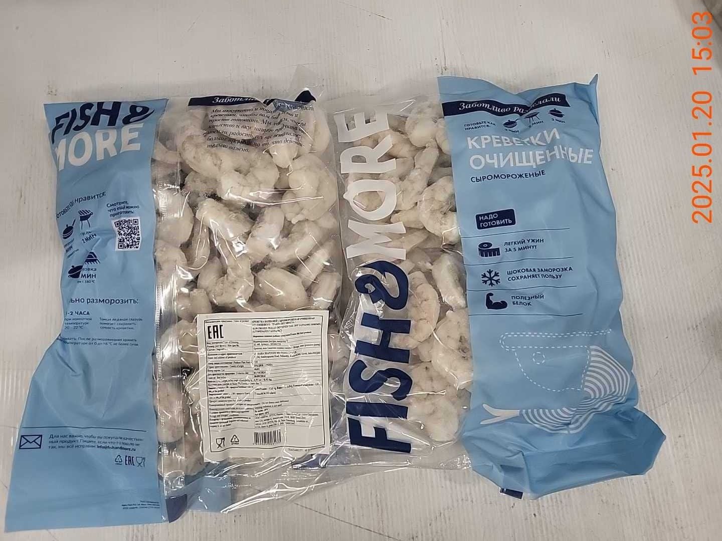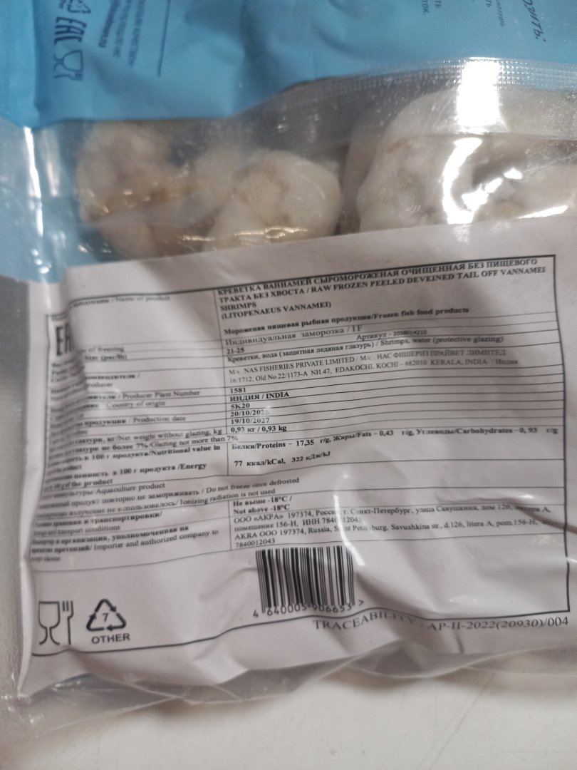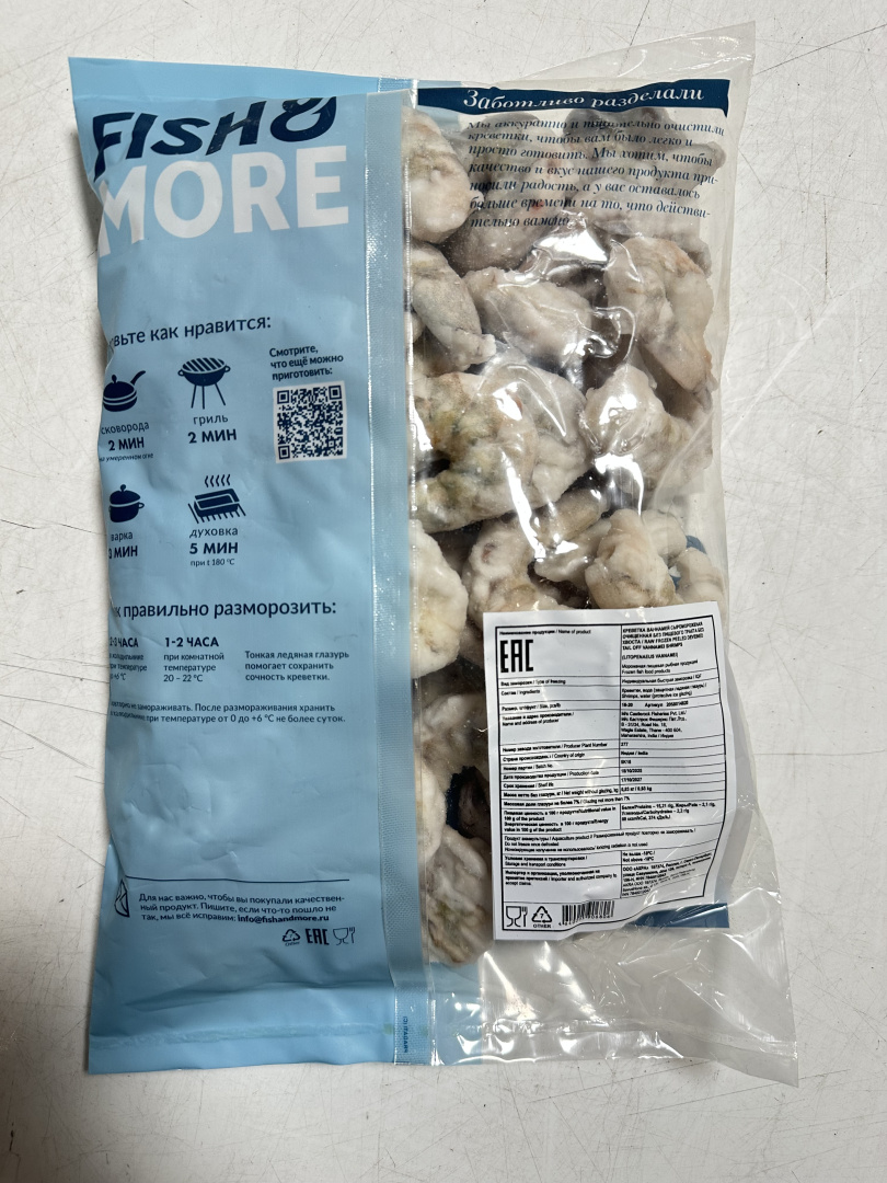 Креветки готовы к употреблению после размораживания: они очищены от панциря и пищевода.